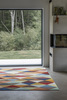 Taza autumn är en handvävd ullmatta med ett grafiskt triangelmönster i mustiga färger. Färgpaletten är en noga avvägd mix av brända orange, bruna och röda toner, blått, vitt och lejongult som tillsammans känns både uttrycksfull och harmonisk. Taza har en energisk design som passar extra fint i en i övrigt avskalad inredning. En slät och vändbar ullmatta som Taza är lätt att sköta och passar därför bra att placera även i kök eller matsal. Tjockleken är ca 1 cm.
